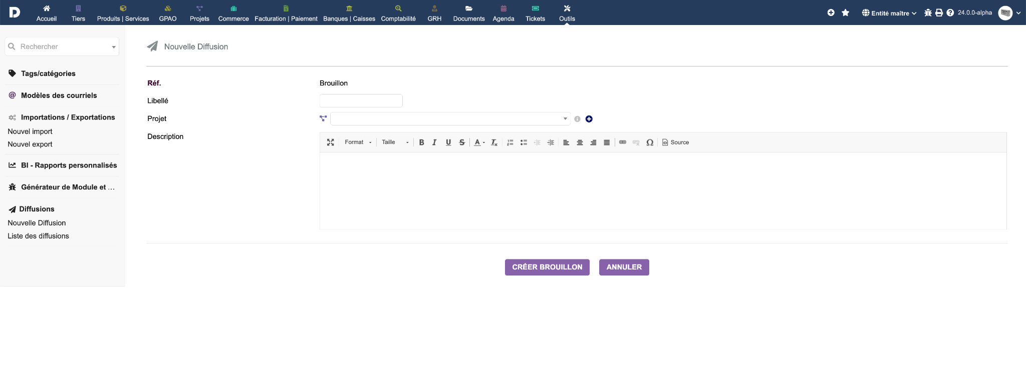 Création d'une nouvelle Diffusion