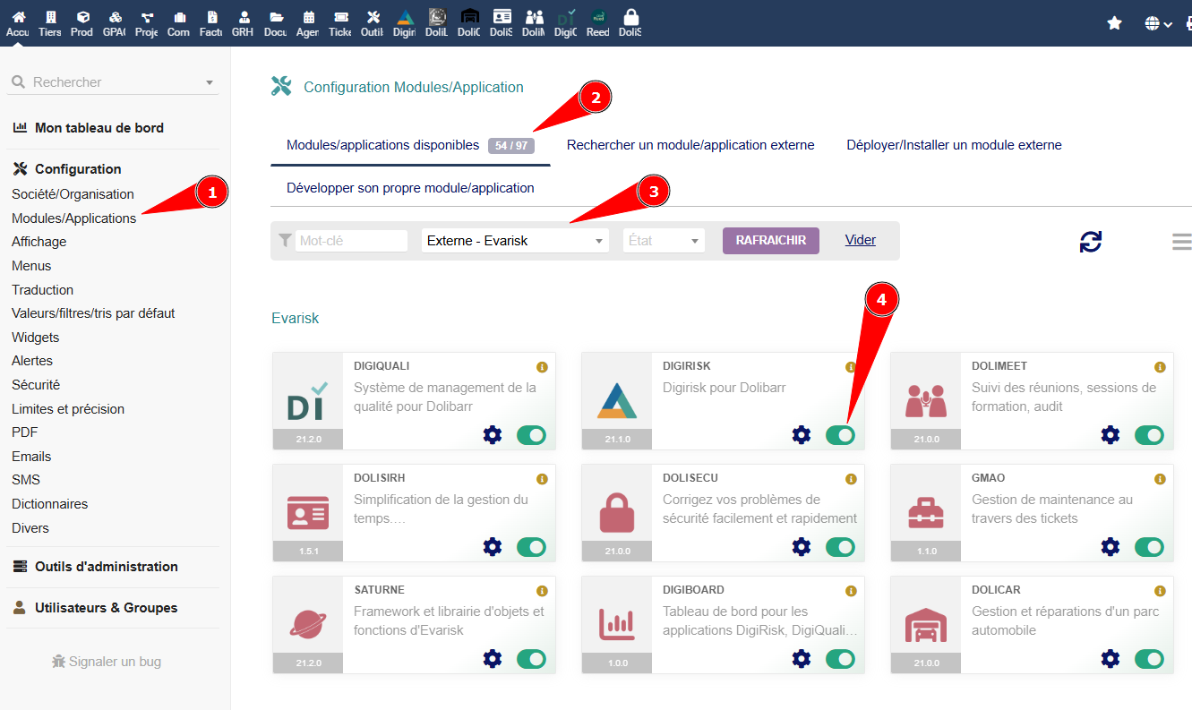 activation des modules Evarisk