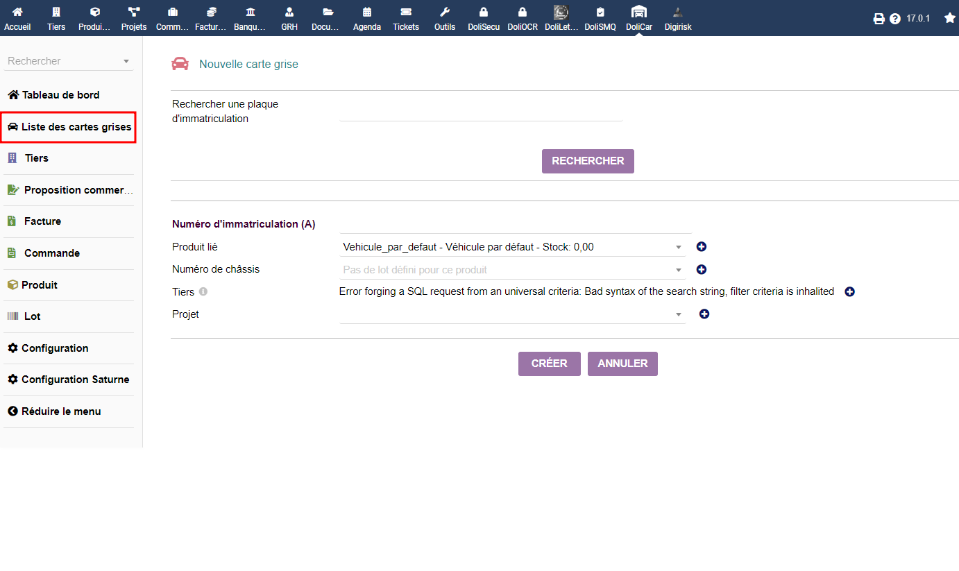 Ajouter une carte grise